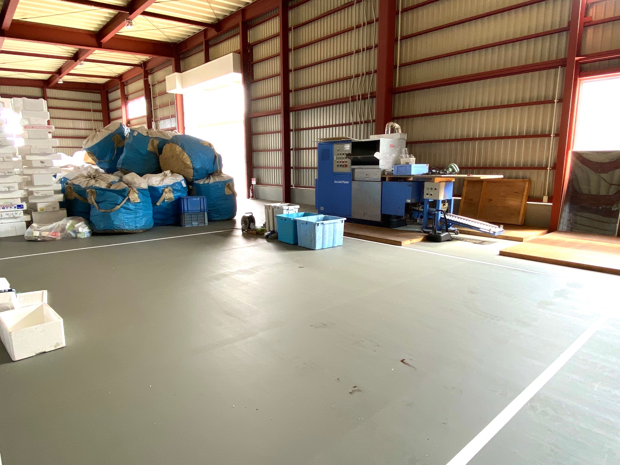 発泡スチロールのお持込の際に、お支払いの後直接多賀谷第3工場へ搬入して頂いておりましたが工場が移設致しましたので、お支払い後そのまま弊社事務所にて搬入して頂ければと思います。(発泡スチロールを入れる袋も入れ替えでお渡しします!)