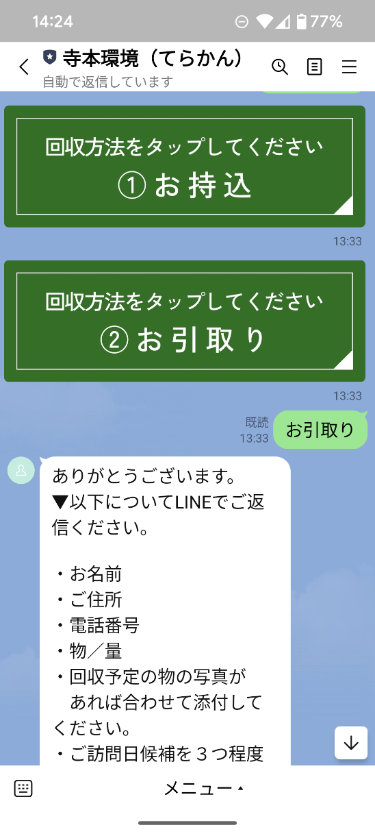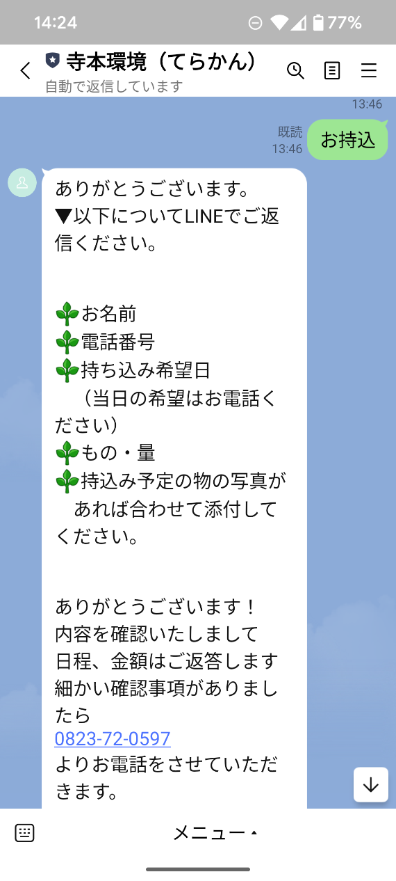 てらかんの営業時間内に電話のやり取りが難しい…というお客様もご安心ください!!