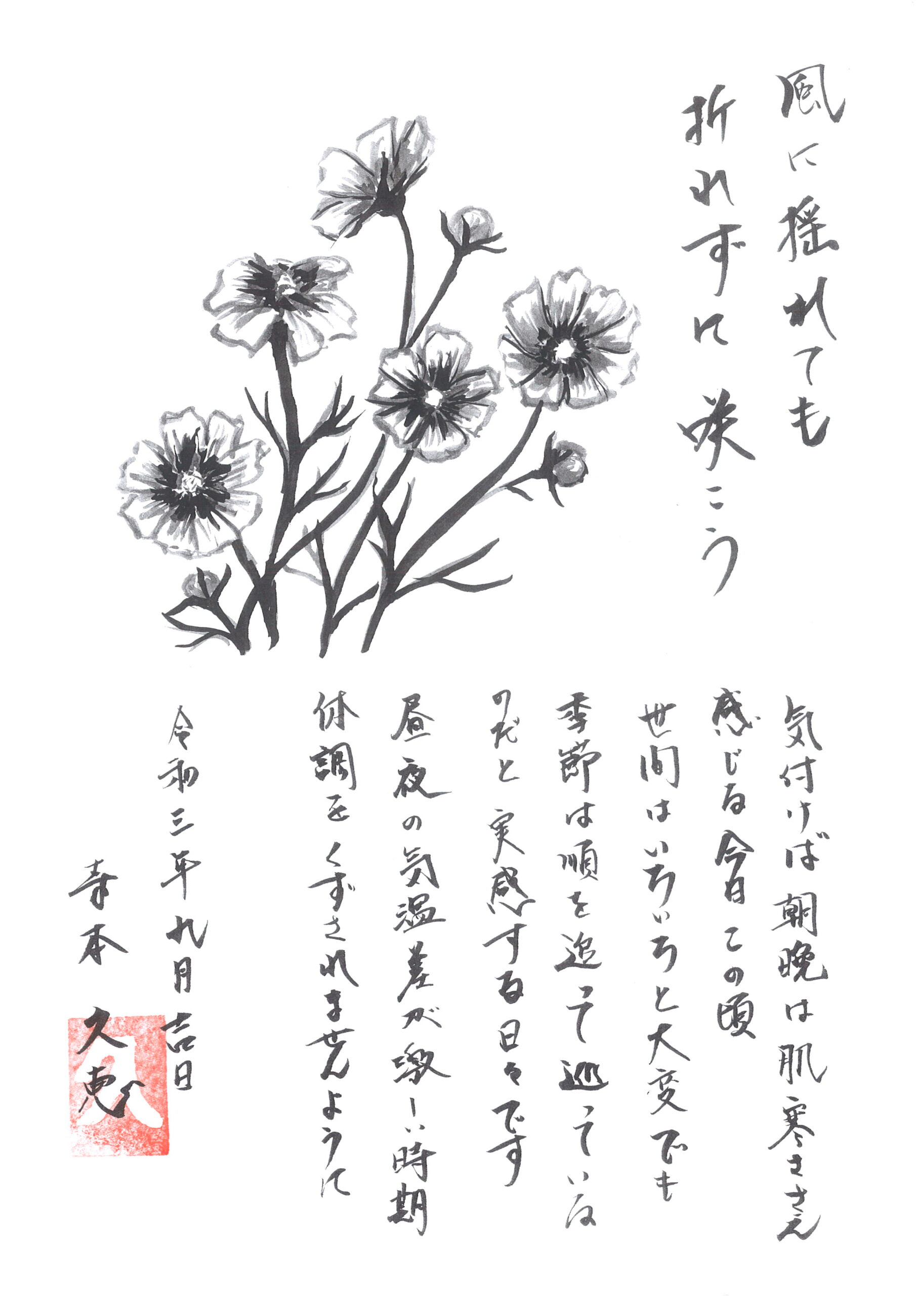 さて、毎月の請求書に入れさせていただいている絵手紙の紹介です(^^)/