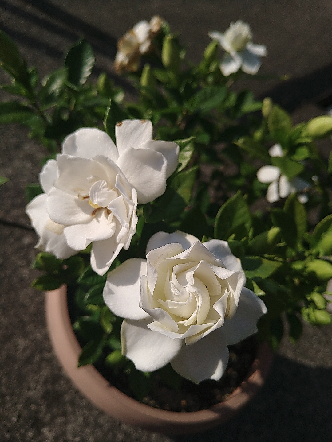 沢山つぼみがついたもののなかなかひらかなかったので少し心配したのですが、開き始めたら毎日ポコポコ白い花が咲くようになりました(^^♪